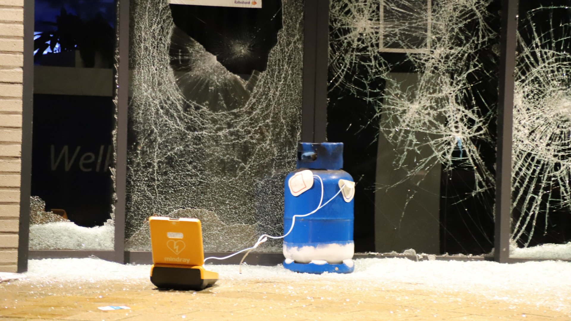 Bij het pand van de bank troffen agenten een aantal gasflessen aan, waaraan een gestolen AED was vastgemaakt. De flessen maakten sissende geluiden. De man riep dat hij de boel zou opblazen als er niemand kwam opdagen.