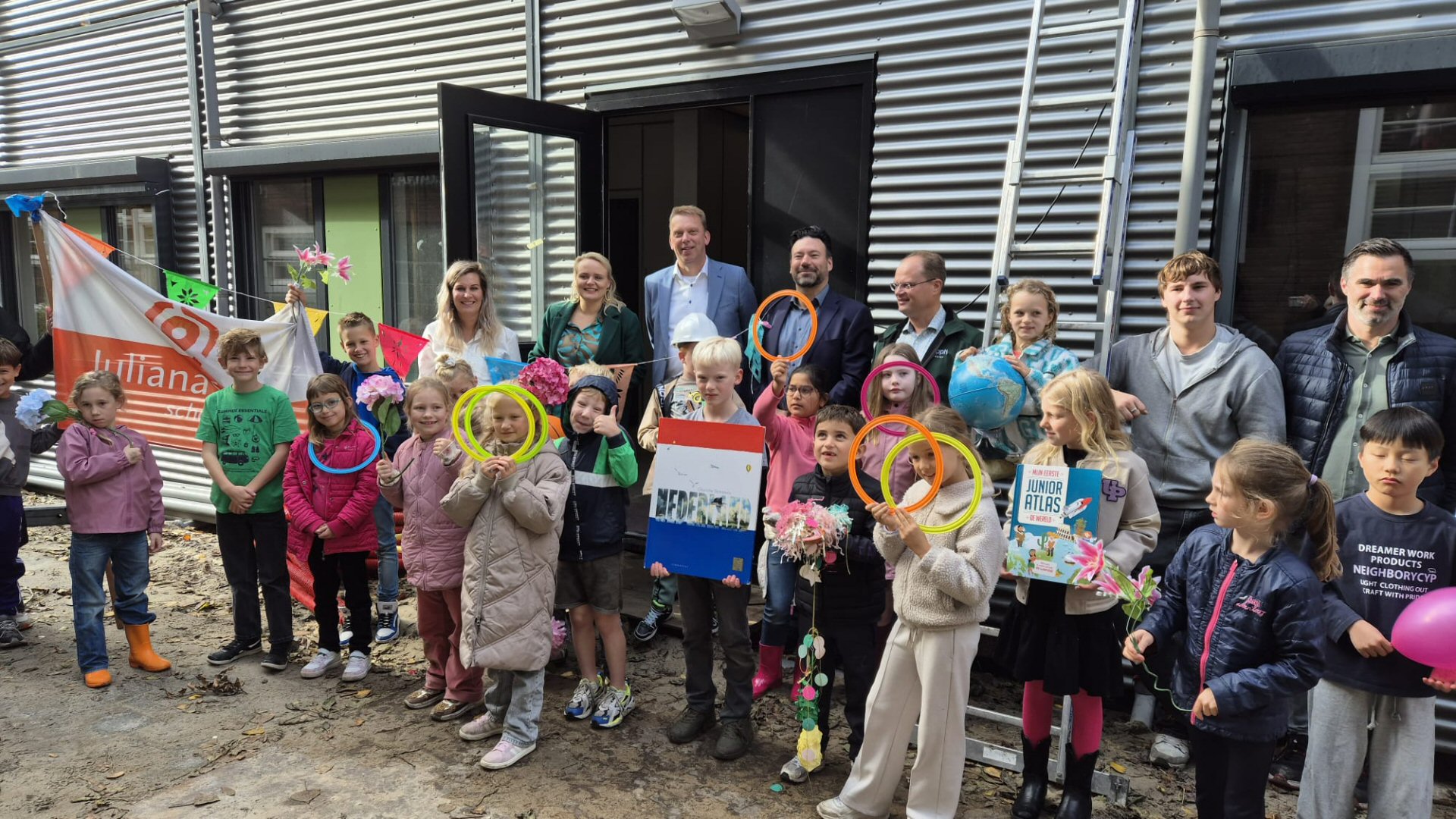 Op de bouwplaats van de Julianaschool in Schagen was het donderdag 9 oktober een feestelijk gezicht: vlaggetjes, blije gezichten en een trotse wethouder. De nieuwe tijdelijke lokalen voor een basisschool in Schagen zijn bijna klaar, en dat bijzondere moment werd gevierd met leerlingen, leerkrachten en genodigden.