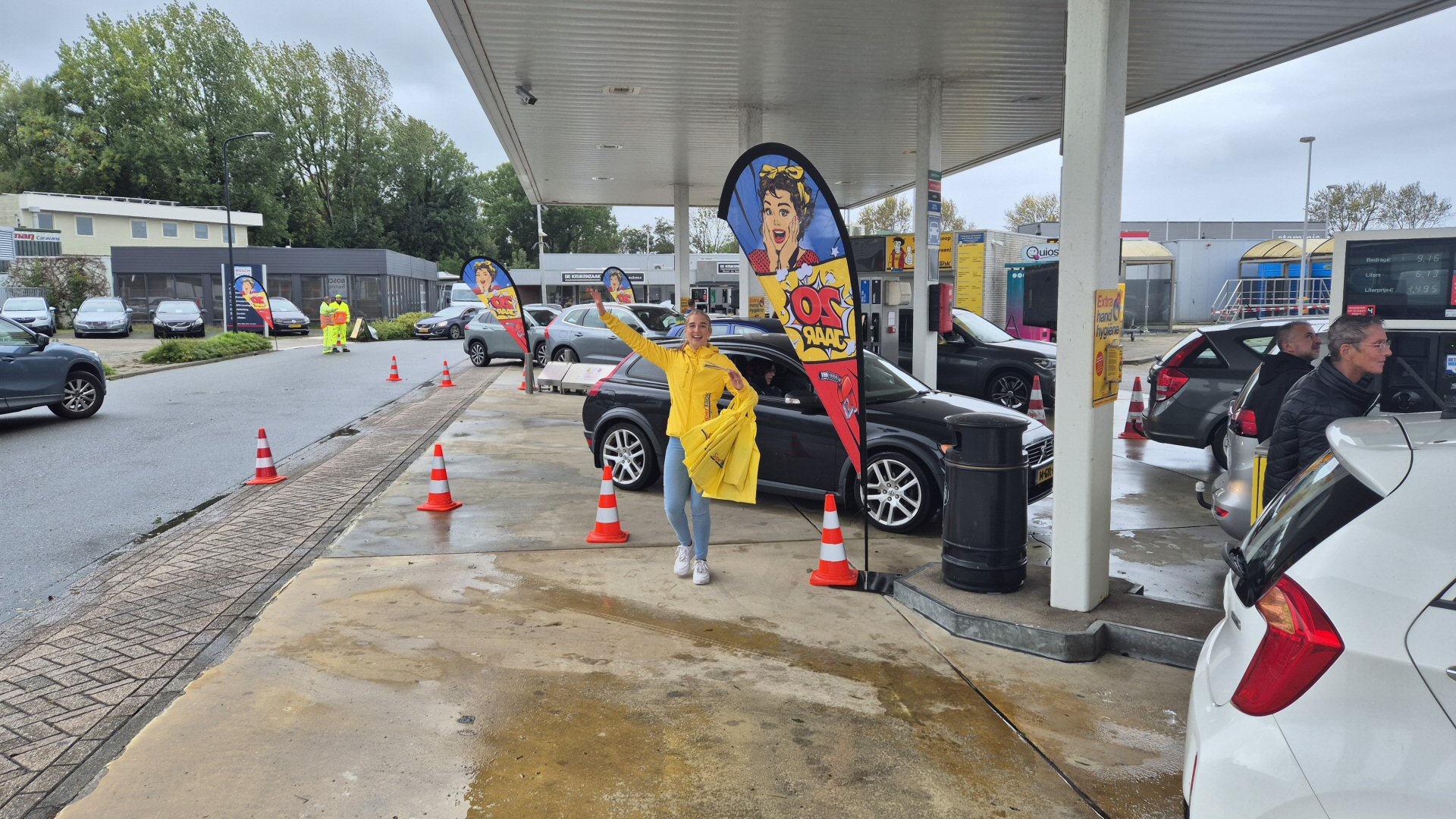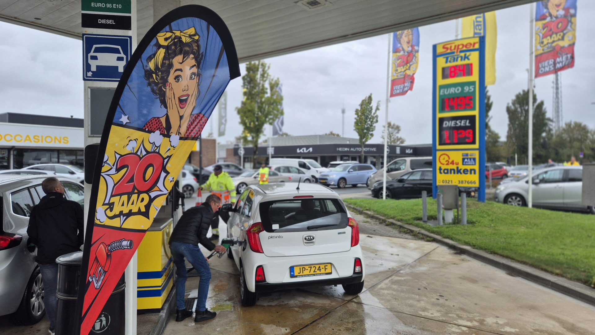 Een promotieteam deelde folders uit, muziek zorgde voor een extra feestelijke sfeer. Mensen die na 13:20 uur nog in de rij stonden, hadden pech. Goedkoop tanken zat er voor hen niet meer in. Als troost kregen ze een bon voor voordeel bij de volgende tankbeurt.