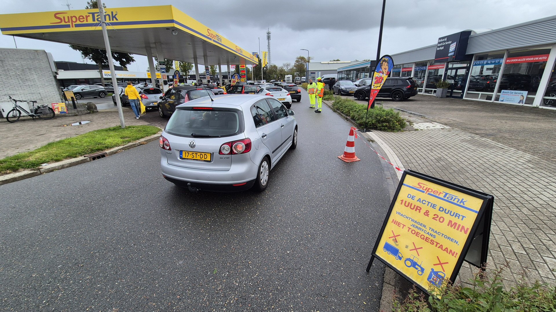 Zaterdag werd de actie al gehouden bij twee andere tankstations van Supertank in Bunschoten en Zeewolde. Zondag was onder andere Schagen aan de beurt. De actie ging om 12:00 uur van start en duurde precies één uur en 20 minuten.