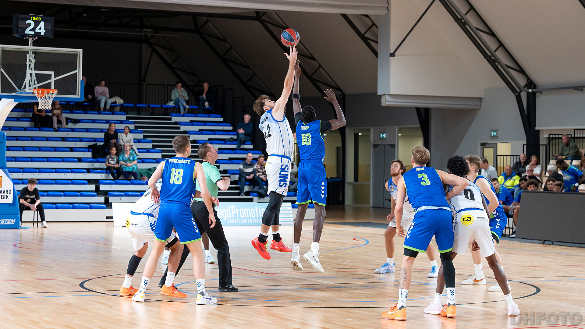 In sporthal Quelderduijn speelden de Den Helder Suns zaterdagavond hun eerste thuiswedstrijd van het nieuwe BNXT League-seizoen. De tegenstander was het Belgische Union Mons-Hainaut, een ploeg met ervaring en fysieke kracht. Het was een boeiende en gelijk opgaande strijd waarin beide teams elkaar maar moeilijk loslieten. Het eerste kwart begon met veel energie van beide kanten. De Suns toonden lef en probeerden direct het initiatief te nemen, maar de bezoekers hielden stand. Na een korte voorsprong van 17–13 leek Den Helder het kwart goed af te sluiten, toch pakte Mons-Hainaut in het slotakkoord van het eerste kwart de minimale marge: 17–18.
